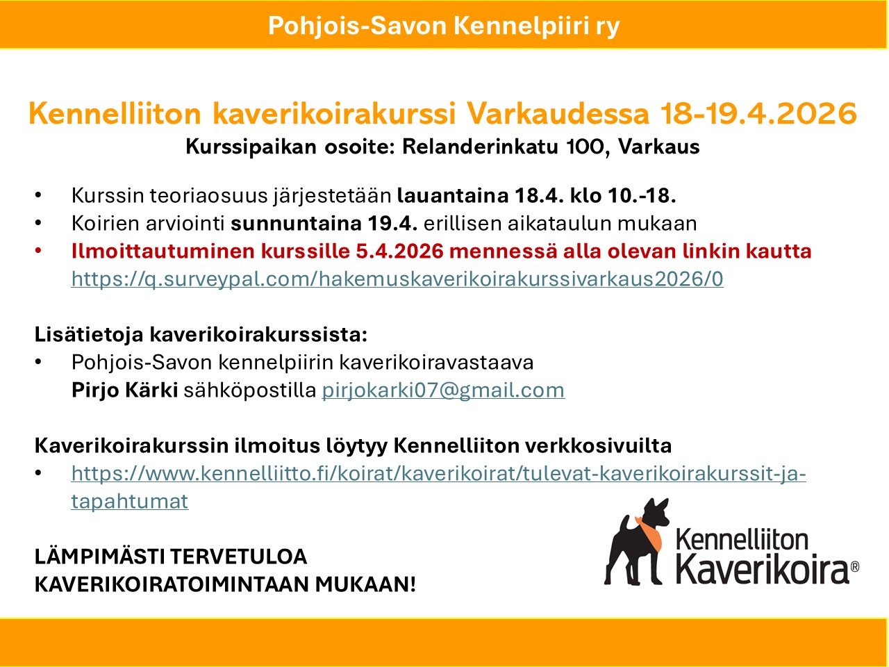 - Varkauteen ilmoittautuminen https://q.surveypal.com/hakemuskaverikoirakurssivarkaus2026/0