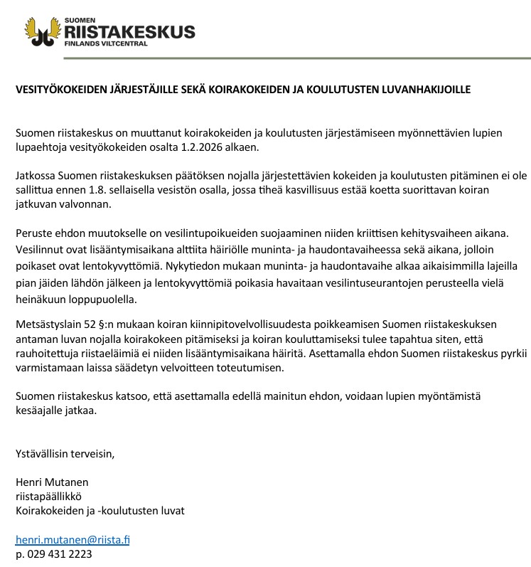 08.03.2026 Tärkeä tiedote irtipitolupien hakijoille