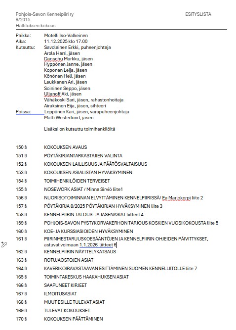 - Hallitus on puoltanut vuodelle 2026 anotut ryhmänäyttelyt, kaikki hakijat pääsevät järjestämään anomaansa ryhmänäyttelyä. Myös anottu pentunäyttely hyväksyttiin. Hallitus myös nimesi isojen vuoden 2026 Kuopion ja Varkauden näyttelyiden järjestelyvastaavat yhdistykset. Hallitus haki vuodelle 2027 isot näyttelyt perinteisesti omiin nimiinsä. Mukaan haluavat voivat lähettää asiasta johtokunnan kokouksesta allekirjoitetun pöytäkirjanotteen viimeistään 30.9.2025 kennelpiirin sihteerille.